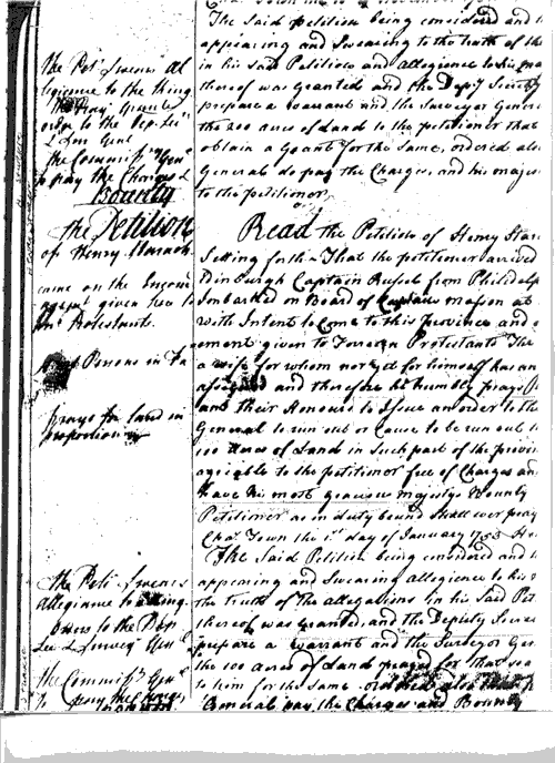 Copy of Original Heinrich Sturchi's Bounty Grant - 1753 - Text ---Copy of Original |